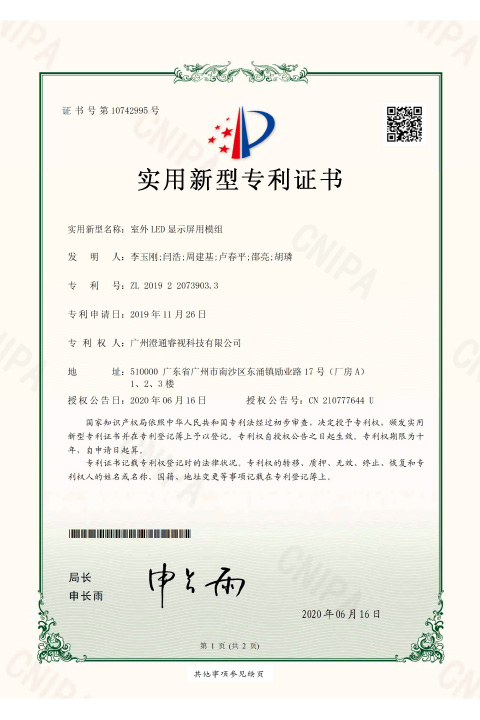 睿視實用新型專利證書